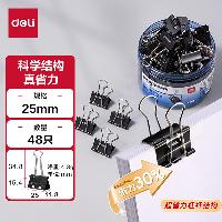 得力(deli) 8562S 41mm省力黑色长尾夹票夹 2#金属燕尾夹票据夹子 大号 24只/桶便宜实惠 经济划算