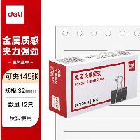 得力(deli)32mm金属黑色长尾夹/票据夹/燕尾夹/铁夹子 12只/盒 9543¥65.0