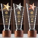 五角星水晶奖杯XS-2331 木质底座 小号25cm