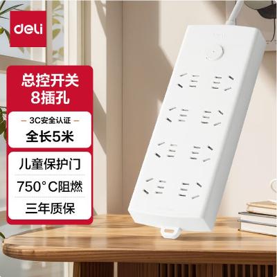 得力(deli)新国标插排插线板 总控开关 保护门 8位 5米 LX126