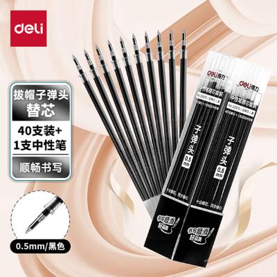得力(deli)0.5mm中性笔芯签字笔替芯 34567/6600/Q7适用 附加中性笔1支 子弹头40支/盒 DL-33570