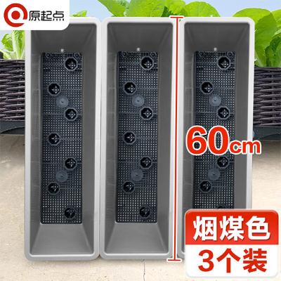 原起点60cm长方形加厚自吸水花盆 烟煤灰 送自吸水底网 3个装