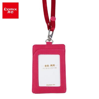 包装清单: | 齐心(COMIX) A7928 多彩竖式两用PU身份识别卡套/工作证/证件卡 玫红色 |