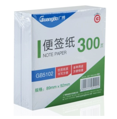 包装清单: | 广博(GuangBo) GB5102 便签纸 92*89mm 300张/包 *1 |