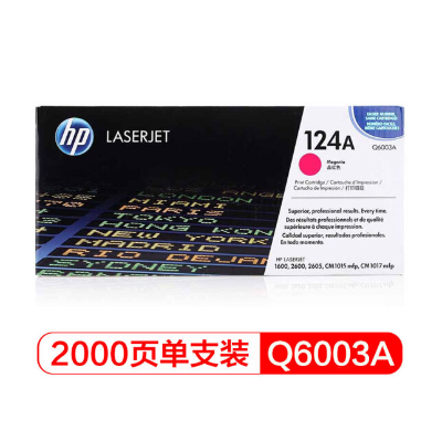 包装清单: | 惠普(HP) LaserJet Q6003A 124A 品红色硒鼓 适用LaserJet 1600 2600 2605系列 CM1015 CM1017 |