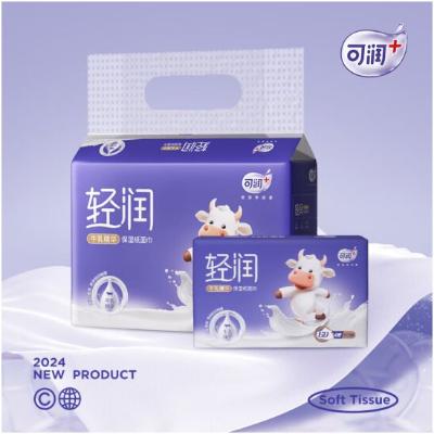 可润+轻润牛乳精华保湿面巾抽纸加厚6D压花4层90抽 8包/提