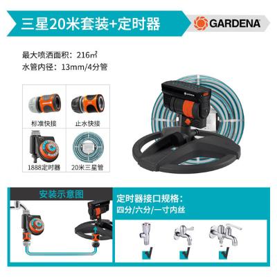 包装清单: | 嘉丁拿(GARDENA) 自动喷灌器喷头洒水器水流驱动矩形摇摆式小面积浇灌喷头 20米套装+浇花定时器(1888) |