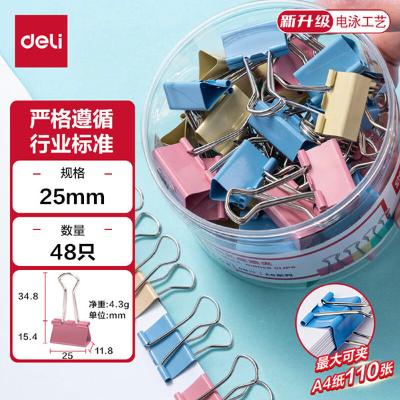 包装清单: | 得力(deli)48只25mm彩色长尾夹票夹 4号中号金属燕尾夹票据夹子 48只/筒 8554ES |