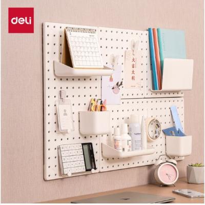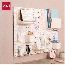 包装清单: | 得力(deli)收纳洞洞板 免钉置物架可立桌可挂墙办公学习厨房 敞口托盘XDM51 中号板体27*27*1.6cm *1 |