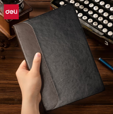 包装清单: | 得力(deli)A5商务笔记本本子皮面本 记事本日记本会议记录本80张 BP132 黑色 * 1 |