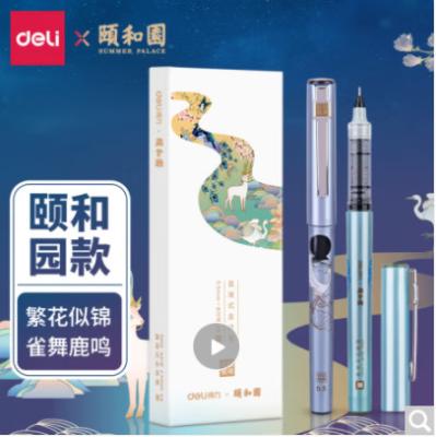 得力(deli)×颐和园直液式中性笔 0.5mm全针管签字笔水笔 走珠笔国潮文具