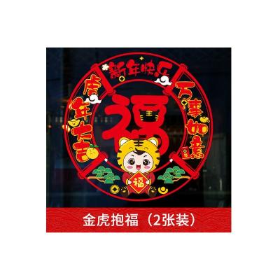 2022虎年新年春节窗花玻璃贴静电贴剪纸 39CM 2张/对