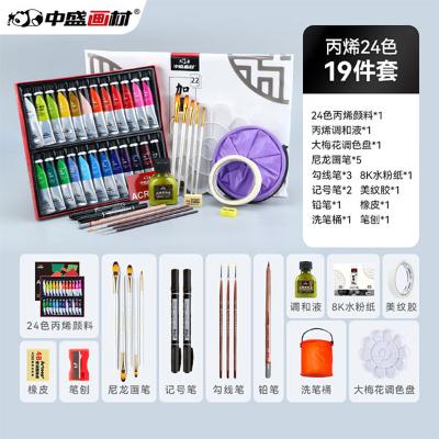 包装清单: | 中盛画材(transon) 丙烯颜料套装12色24色防水初学者帆布鞋子diy石头手绘纤维染料炳稀衣服石头安全涂鸦 |