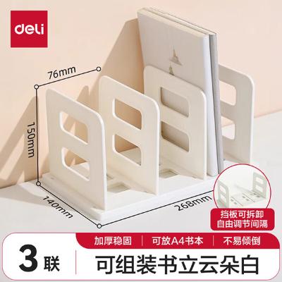 得力(deli)3联组装可拆卸桌面书立置物架书立 TB513 白色