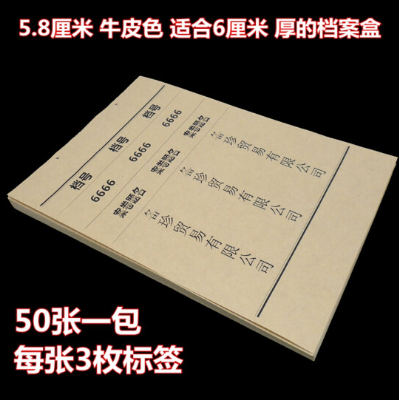包装清单: | 档案盒侧面不干胶标签贴 深牛皮色 5.8厘米 一包150贴 适合6厘米厚盒 送打印软件模板 |