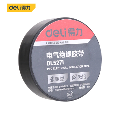 得力(deli) DL5271 PVC电气绝缘胶带电工胶布 无铅阻燃防水胶布 RoHs2.0认证 10米黑色单卷