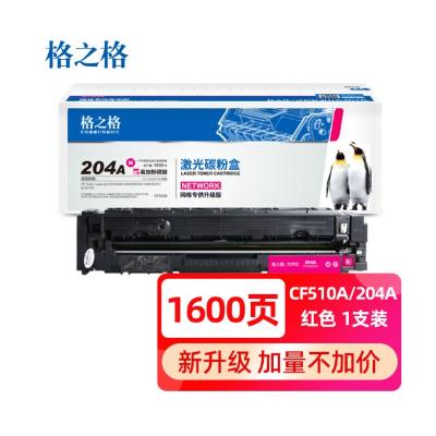 包装清单: | 格之格 CF510A硒鼓适用惠普204a硒鼓 m180n m181fw M154NW cf510a 带芯片红色打印机墨粉盒 *1 |