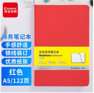 齐心 笔记本子A5/122张皮面记事本 商务办公会议记事本日记本文具用品 红色 C5902