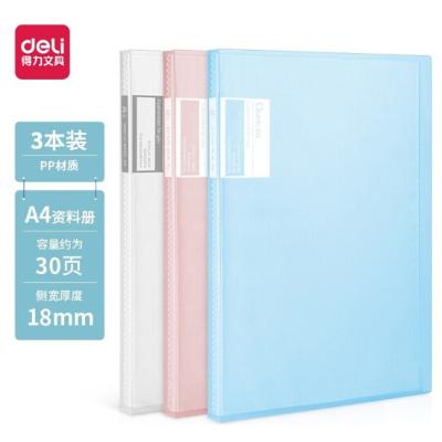 得力(deli)A4/30页淡彩资料册 活页文件夹 资料试卷收纳袋/册 3只混色装 27151