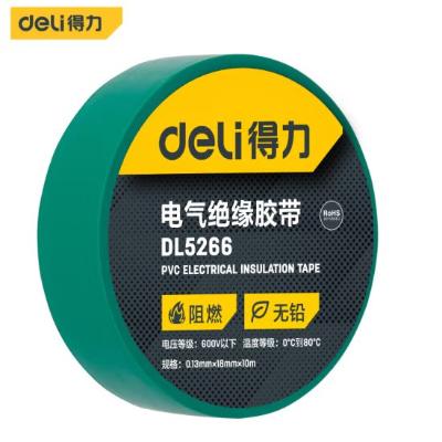 得力(deli)PVC电气绝缘胶带 耐寒耐磨抗老化无铅阻燃 DL5266 单卷装 10m 绿色