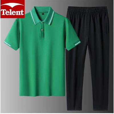 天伦天(Telent)运动套装男短袖冰丝速干裤子POLO领上衣两件套 绿色-直筒 5XL