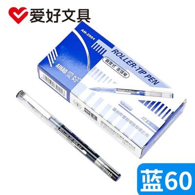 爱好(AIHAO) 0.5mm 子弹头红色直液式走珠签字笔考试中性笔 AH2001蓝色60支