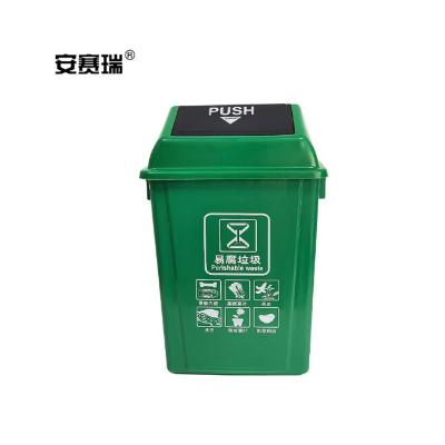 安赛瑞 摇盖垃圾分类垃圾桶 环卫户外商用干湿分类 塑料摇盖式果皮垃圾桶 20L 绿色 24353