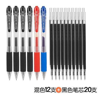 爱好(AIHAO) 商务办公按动中性笔签字笔489混色12支 10黑1红1晶蓝+20支黑色原