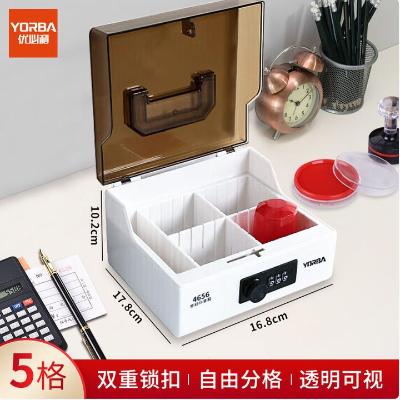优必利 印章收纳盒 多格手提印章箱 多功能机械密码带锁 透明翻盖 5格 机械密码印章箱-白咖 4656