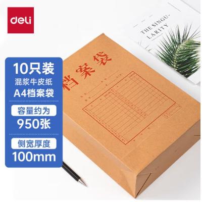 包装清单: | 得力(deli)10只 A4混浆 250g 牛皮纸档案袋 侧宽10cm 大容量标书合同文件资料袋 8387 |
