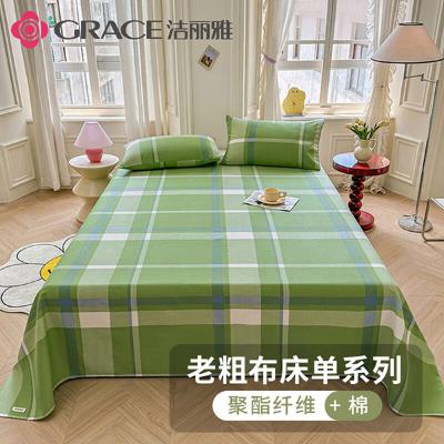 包装清单: | 洁丽雅 A类抗菌格子老粗布床单单件四季床上用品 清新格绿230cmx240cm |