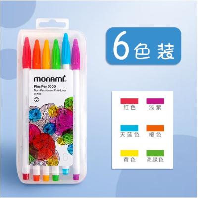 慕那美(monami)新P3000纤维笔水性笔彩色中性笔套装 彩虹6色 04009Z06-RB