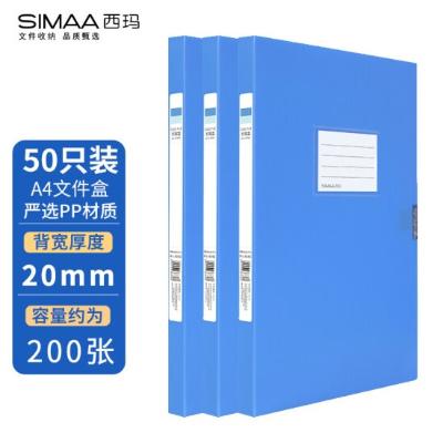 西玛(SIMAA)50只装 20mm A4 PP粘扣档案盒 蓝色