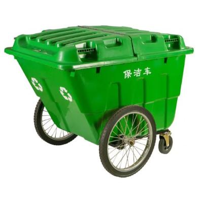 洛滑 400L 环卫保洁车 加厚带盖轮垃圾清运车 手推车 桶塑料垃圾车 绿色 带盖