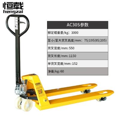 恒载 手动地牛 3吨液压托盘搬运叉车 外宽550叉长1150mm 尼龙轮