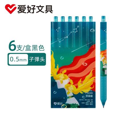 爱好(AIHAO) 0.5mm 子弹头办公用品黑色签字笔水笔考试笔星座按动中性笔 双鱼座 GP2800-6支装
