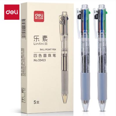 得力(deli)多功能4色圆珠笔 0.7mm子弹头按动笔原子笔中油笔 (黑红蓝绿) 5支/盒 DL-33413