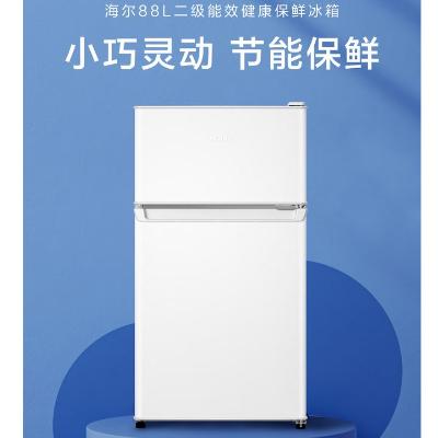 海尔 冰箱双开门二门小冰箱 超薄迷你小型冷藏冷冻两用电冰箱 88升
