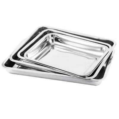 垒固 不锈钢方盘 长方形托盘 优质加厚无磁盘 27*20*2cm(浅盘)4个装
