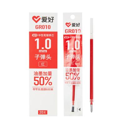 爱好(AIHAO) 笔芯1.0mm 水笔芯速干大容量替芯红色碳素子弹头1.0mm 中性笔笔芯GR010
