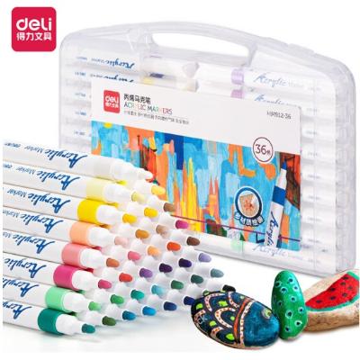 得力(deli)36色 单头水性丙烯马克笔 PP盒装 防水 丙烯颜料彩绘全套 涂鸦笔 HM912-36