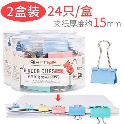 爱好(AIHAO) 彩色长尾夹文具文件小夹子家用燕尾夹 66803 彩色24只(32mm) 两盒