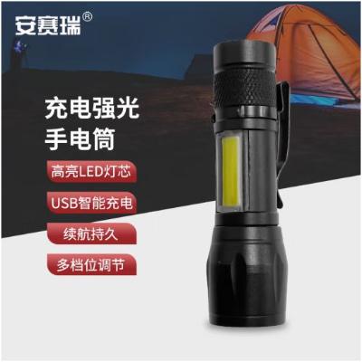 安赛瑞 应急灯手电筒 USB充电式 便携户外应 强光迷你带侧灯变焦 铝合金 1G00199 200个起订