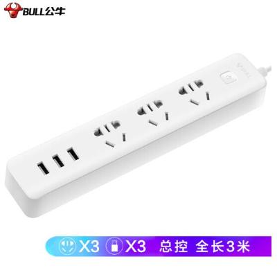公牛 GN-B403U 新国标公牛小白USB插座 插线板/插排/排插/ 3usb接口 3孔全长3米带保护门
