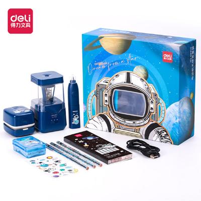 得力(deli)×中国航天 套装大礼包 电动削笔机+电动橡皮擦+桌面吸尘器+闪光铅笔+橡皮擦替芯 68910