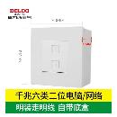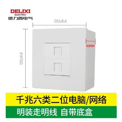 德力西(DELIXI)六类网口网线面板超五类86型暗装明装座家网络宽带接口墙壁插座 二位双电脑(六类)白明装