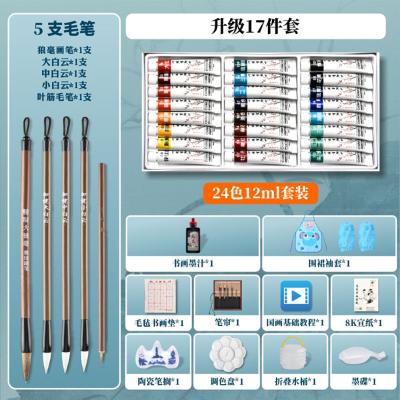 美邦祈富 国画颜料初学者套装 矿物质颜料国画专用工具套装 24色12ml 升级版(17件套)