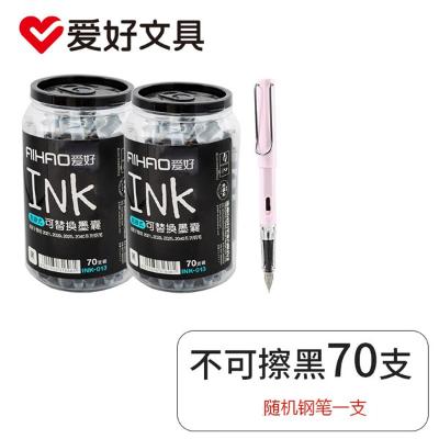 包装清单: | 爱好(AIHAO) 签字笔学生可替换钢笔墨囊ink013 桶装 办公用品不可擦黑色70支+随机钢笔 |