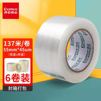 包装清单: | 齐心(COMIX) JP5515-6 普透封箱胶带 55mm*150y 6卷/筒 透明 |