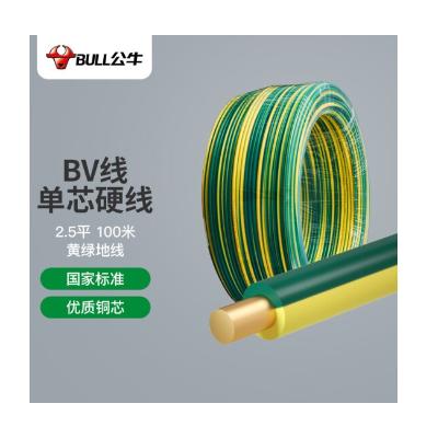公牛(BULL) 国标电线电缆 BV单芯单股铜线 BV2.5平方 黄绿地线 双色 100米